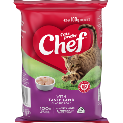 Chef Tasty Lamb Classic Loaf Pouches Cat Food 4 x 100g