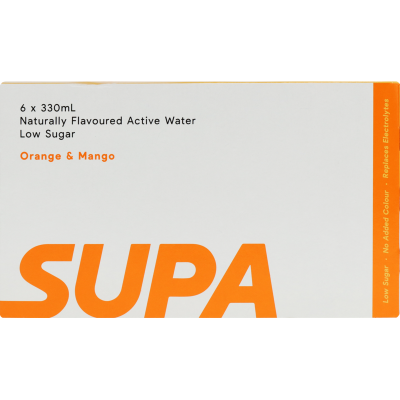 Supa Water Orange & Mango Naturally Flavoured Active Water 6 x 330ml
