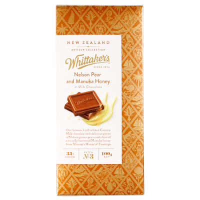 Whittaker's Nelson Pear & Manuka Honey Chocolate Block 100g